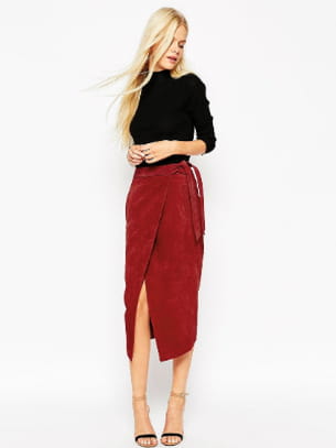 Jupe rouge en daim avec ceinture à nouer d'asos