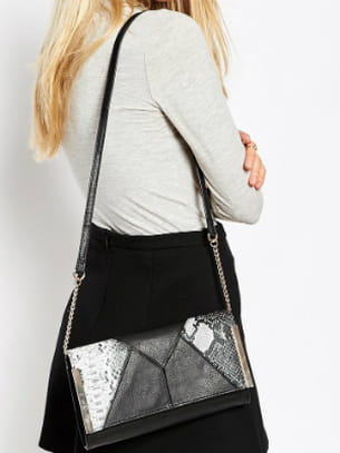 Pochette noire à empiècements python et barres métalliques d'Asos