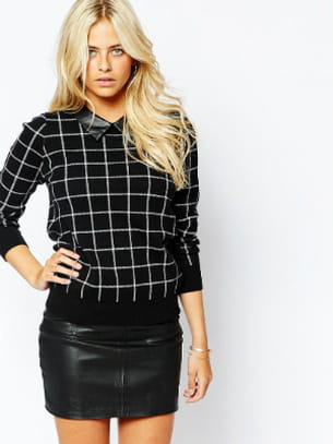 Petit pull noir et blanc à manches longues et col effet cuir d'Oasis sur Asos