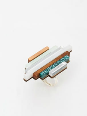 Bague en bois turquoise, blanche et cuivre de Wolf & Moon sur Asos