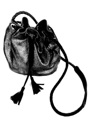 Sac bourse silver en cuir métallique imprimé reptile avec deux pompons de Berenice