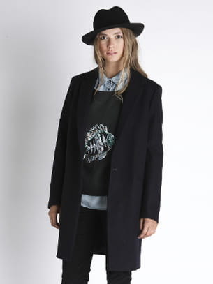 Manteau bleu foncé coupe droite en laine mélangée de Bérénice