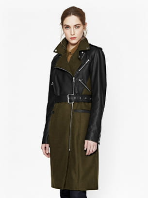 Manteau kaki et noir façon perfecto en laine mélangée et similicuir de French Connection