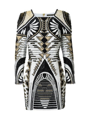 Robe courte moulante à manches longues en perles et strass de H&M X Balmain