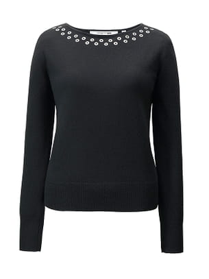 Pull noir col rond à oeillets en cachemire d'Uniqlo X Carine Roitfled