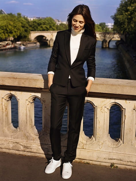 La styliste de talent Anne Valérie Hash, qui sévit depuis peut chez la griffe de prêt-à-porter française, nous a concocté des pièces mode incroyables qu'on se voit déjà porter toute la saison. Clin d'oeil au sublime tailleur veste-pantalon (en version noir ou dark navy) qui nous fait rêver avec son pull à col roulé en laine blanc dessous et, aux pieds, les fameuses it-sneakers "Slash" blanches, déjà cultes chez les accros des baskets citadines. On a également adoré la jupe mi-longue en drap de laine, parfaite avec un blouson en cuir style perf', ainsi que l'imprimé "Belflower", décliné dans diverses coupes de vêtements.
