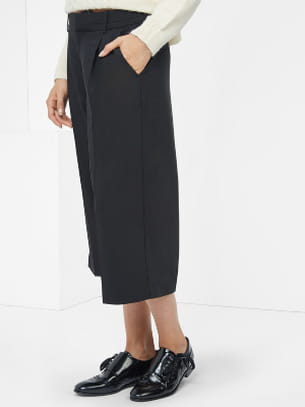 Pantalon large 100% laine avec un effet jupe culotte gaucho noir de Comptoir des Cotonniers