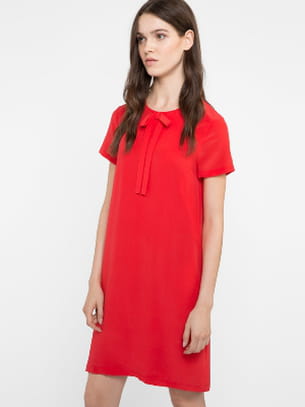 Robe 100% soie au volume droit avec un noeud sur le devant rouge Scarlett de Comptoir des Cotonniers