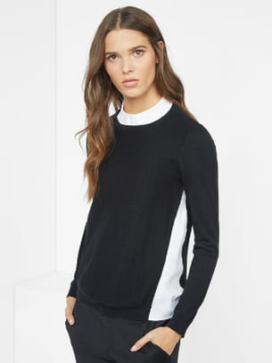 Pull bi-matière noir et blanc au col blanc amovible de Comptoir des Cotonniers