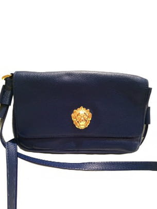 Petit sac bandoulière en cuir de vachette bleu majorelle orné d'une rête de lion dorée de Bobby & Luisa sur lesensdudétail.com