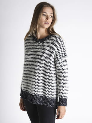 Pull rayé gris et blanc en laine mélangée de Bérénice