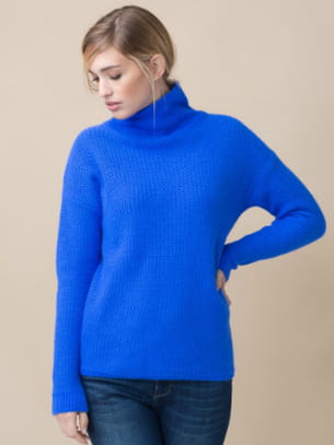 Pull bleu roi à col roulé en angora et laine mélangés de 1.2.3