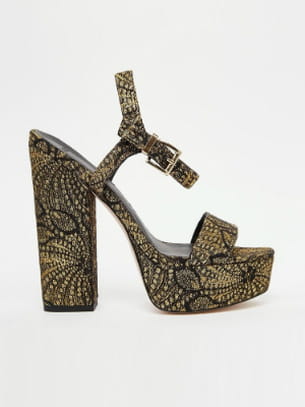 Sandales façon dentelle dorée à talon épais et plateforme de Asos