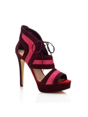 Sandales en cuir suédé rouge et rose lacées à talon aiguille de Guess