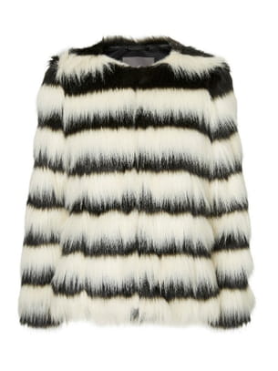 Manteau court noir et blanc en fourrure synthétique à rayures et sans col de Vero Moda