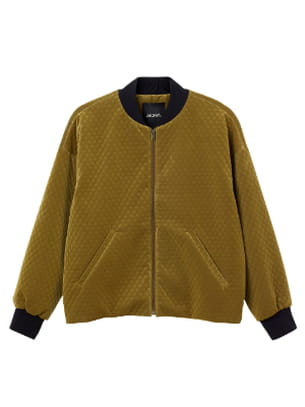 Bolouson court en velours matelassé vert olive et col noir de Monki