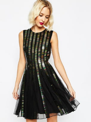 Robe courte sans manches noire avec ornements style barres dorées de Asos
