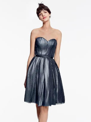 Robe longueur genou bustier et évasée en lamé bleu de Naf Naf