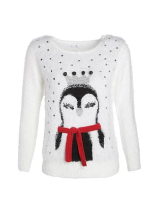 Pull souple blanc à motif pingouin et pois de Cache Cache