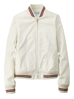 Blouson style teddy en coton blanc avec extrémités rayées de Inès de la Fressange X Uniqlo