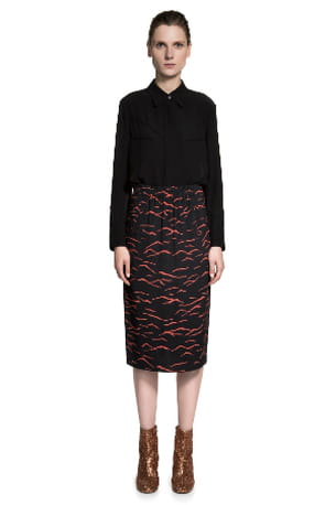 Jupe crayon imprimée et chemise noire de Bimba y lola