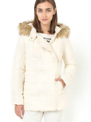 Doudoune courte écru à capuche fourrure marron de Les Petits Prix sur La Redoute