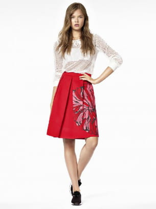 Top blanc en résille et jupe midi rouge en coton avec motif floral de Liu Jo