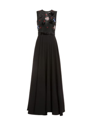 Robe longue noire brodée d'oiseaux et de coeurs de Manoush