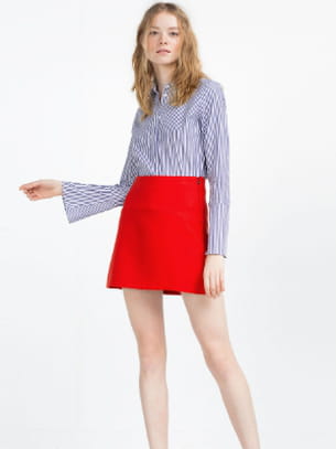 Jupe courte rouge avec fermeture zippée sur le côté de Zara