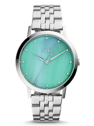 Montre à cadran analogique rond pétrole et boîtier en acier avec bracelet en acier de Fossil