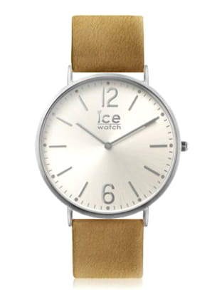 Montre à cadran analogique rond acier et boîier en acier avec bracelet en cuir camel de Ice Watch
