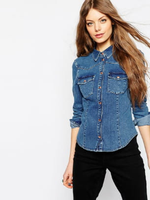 Chemise bleu en denim de coton à délavage moyen avec col en pointe de Asos