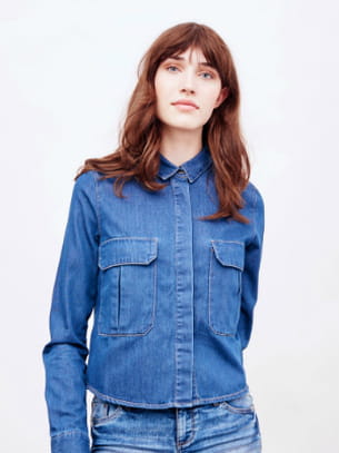 Chemise bleu en coton avec poches medium et botonnage caché de Jennyfer