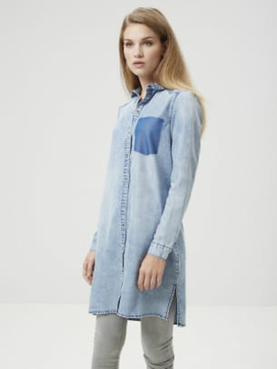 Chemise bleu clair en denim coupe longue avec fausse poche contrastée de Noisy May chez Vero Moda