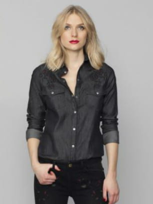 Chemise noir en denim de coton avec roses brodées de Blanco