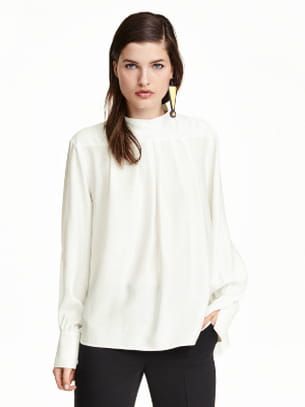 Blouse blanche ample tissée avec empiècement d'épaules et plis plats devant d'H&M