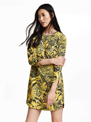 Robe imprimée jaune courte et ajustée en jersey d'H&M