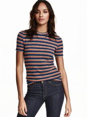 T-shirt rayé en maille douce et côtelée d'H&M