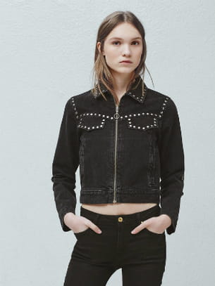 Blouson en coton avec clous décoratifs et poches à rabat de Mango