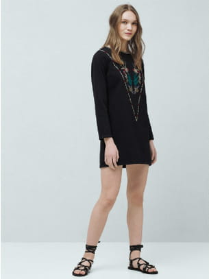 Robe noir en denim avec broderies sur le devant et zip à l'arrière de Mango