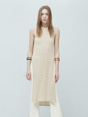 T-shirt long sable en coton mélangé sans manches avec col rond et fentes latérales de Mango