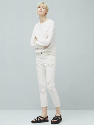 Jeans blanc style crop avec déchirures décoratives et fermeture à boutons de Mango