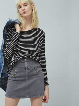 Jupe grise effet usé en denim avec zips décoratifs et fermeture avec boutons de Mango