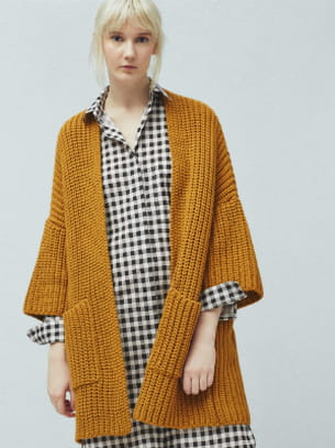 Gilet en grosse maille manches trois-quarts avec deux poches plaquées sur les côtés de Mango