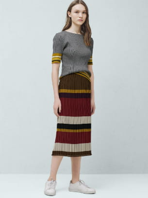 Jupe midi multicolore en tissu fluide plissée avec taille élastique de Mango