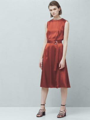Robe cuivre en tissu satiné avec ceinture amovible à la taille et détail d'ouverture au dos de Mango