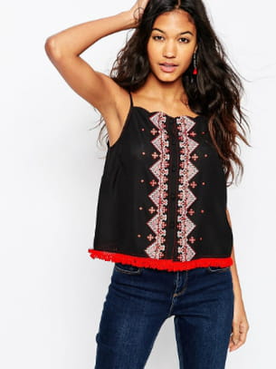 Top noir en tissu léger sans bretelles avec ourlet à franges de Asos