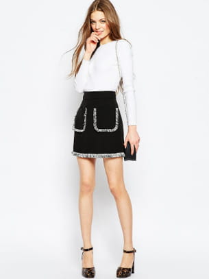 Jupe noir avec franges en coton aux poches et sur l'ourlet de Asos