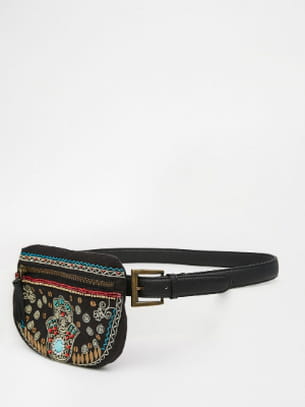 Ceinture noir en similicuir avec porte-monnaie brodé main de Fatma de Asos