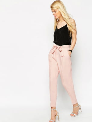 Pantalon rose en tissu stretch taille haute avec ceinture à nouer de Asos